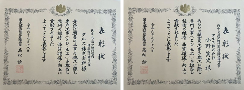 ■令和6年分「国土交通省 北陸地方整備局 令和5年度完成優良工事における令和6年度下請負者局長表彰を受賞しました。」